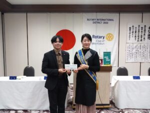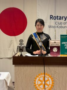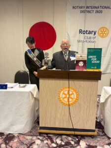 本日は、米山奨学生エズキさん、水戸さくらRC会長 和田様、坂様にお越しいただきました。ありがとうございます。どうぞごゆっくりとお過ごしください。エズキさんには、卓話の時間にご自身の専攻研究についてお話しいただきます。大変優秀な学生さんで、お話を伺えるのをとても楽しみにしています。どうぞ宜しくお願いいたします。
