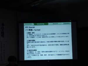 心を込めて準備したと言っておられましたが、母国インドネシアの文化や日本での国際交流活動やボランティア活動、ご自身の研究と、とても丁寧にお話しくださり、エズキさんのお心が伝わって参りました。