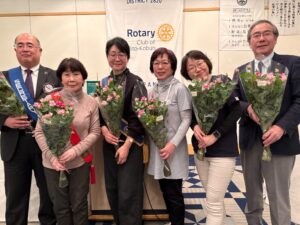 本日は上村貴子様、高井英花様、ようこそお越しくださいました。上村様には、卓話の時間に筋力UPトレーニングをご指導いただきます。どうぞよろしくお願いいたします。